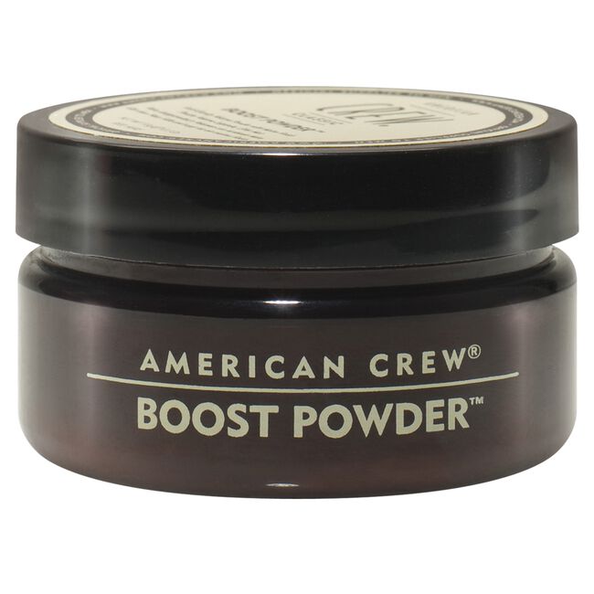 Anti-gravity volume powder with matte finish Give hair lift, thickness and a matte finish with American Crew Boost Powder. This weightless powder adds grit for dramatic, gravity-defying texture. And, it can be layered with virtually any other American Crew styling product.