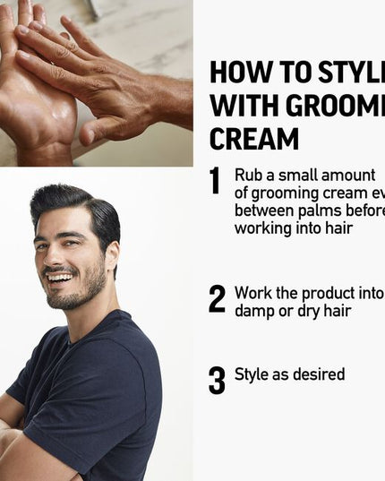 Grooming Cream will help you create a straight, sleek look or soften wavy or curly hair. It contains conditioning elements, like aloe vera, that repel moisture and provide long-lasting style and shape. It provides a strong hold and shine.