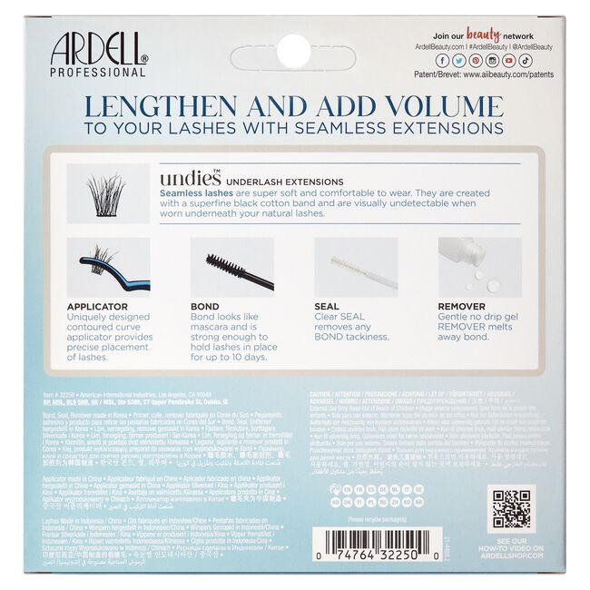 - Apply UNDIES underneath the base of your natural lashes slightly away from waterline. UNDIES should be applied lash to lash, avoiding skin contact. Start from outer corner and work inward. Placement of UNDIES should be right next to each other to achieve a seamless look.