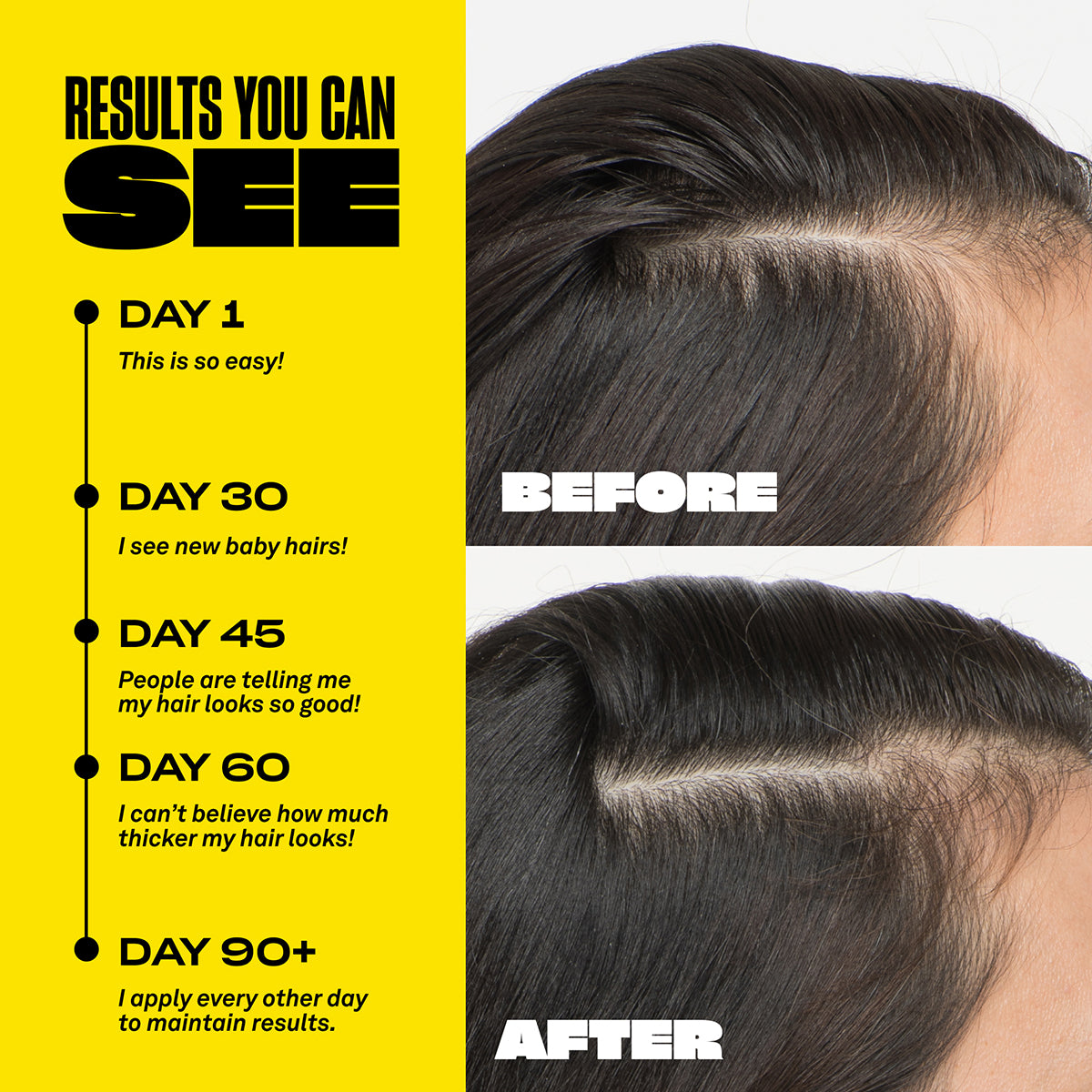- Use one full dropper in the PM across three sections of the scalp.