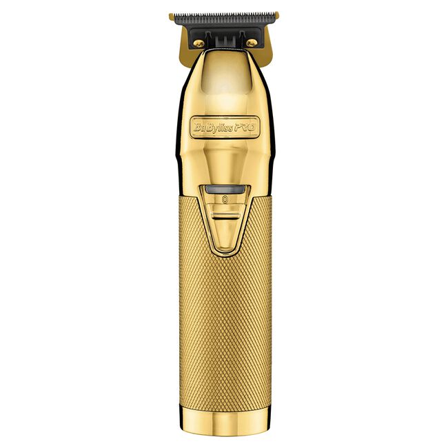 GoldFX is a professional, all-metal, cord/cordless lithium outlining trimmer. Featuring an exposed T-blade with 360 degree views, making this the first of a kind! The perfect tool for crispy edge-ups, hard lines, and all other detail work. Welcome to the new gold standard of outlining trimmers.
