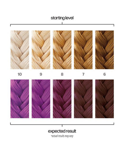 Oftentimes this color can be a bit challenging with semis. Artists are after a pinkish purple, but once applied, the warmth in the hair just pushes the result too far from purple. So, when formulating Hysteria, Danger Jones was certain to include just the right amount of violet to accommodate for the unwanted warmth in the canvas, leaving the perfect berry result.