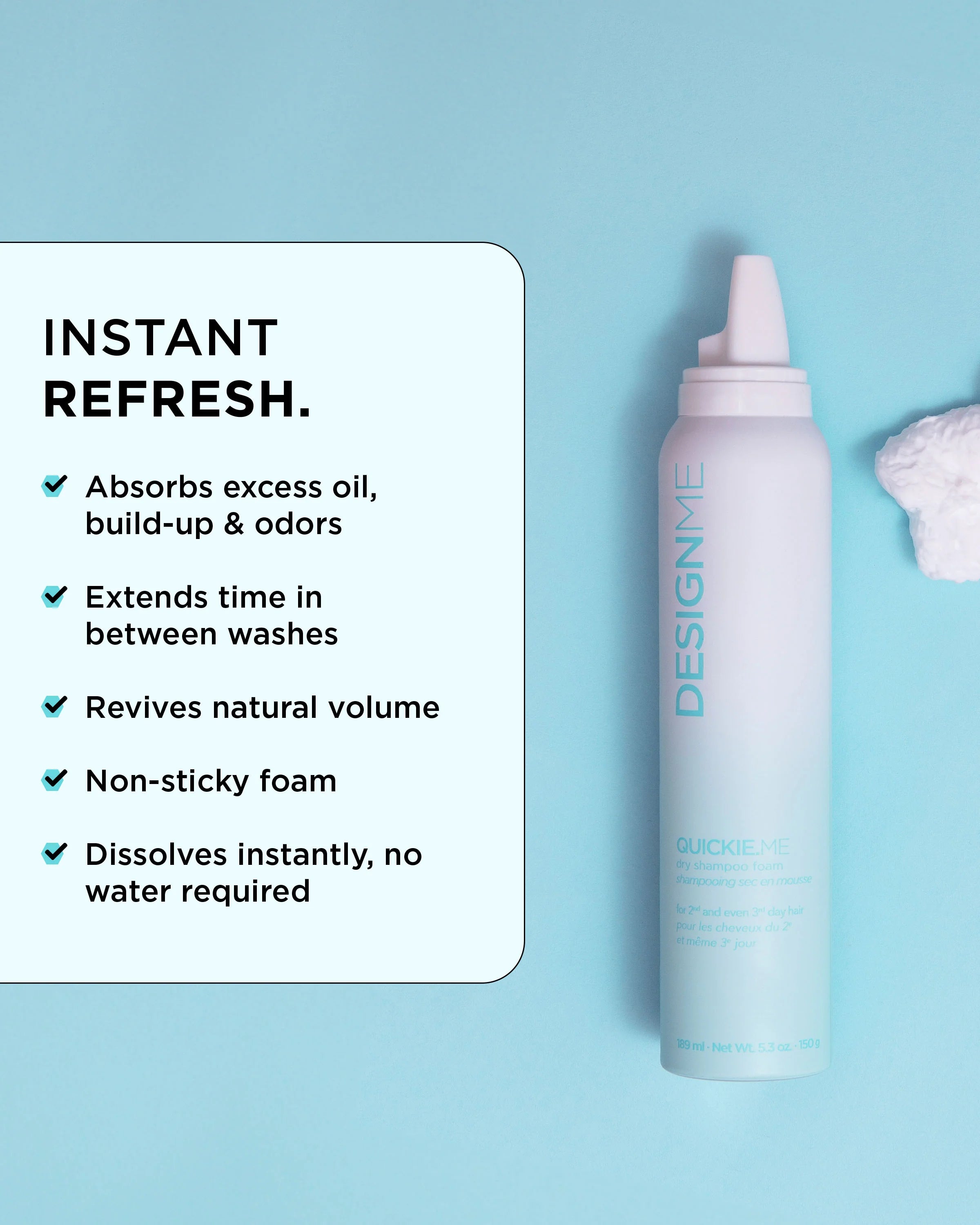 Absorb oils, build up and odors with a non-sticky foam that dissipates instantly - no water required. Meet your quick fix to clean looking & feeling hair with restored volume.