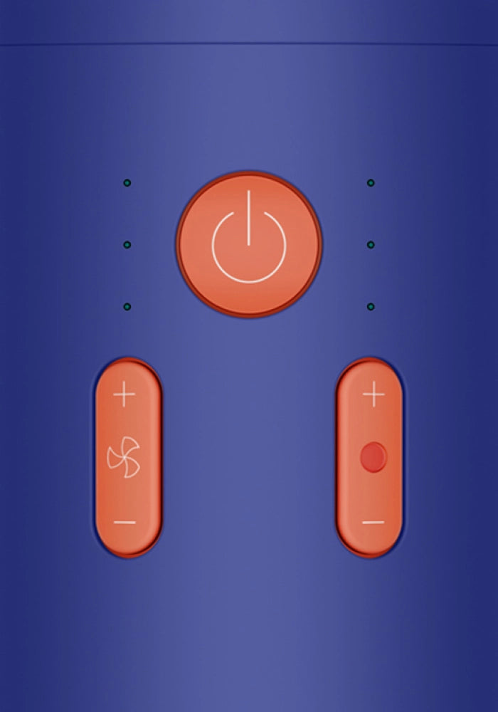 - LED communications change between colors to indicate heat settings, airflow settings and filter maintenance