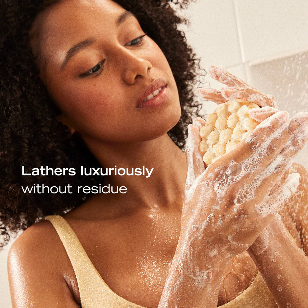 Sodium Palmate, Sodium Palm Kernelate, Water, Aqua, Eau, Glycerin, Avena Sativa (Oat) Kernel Flour, Sodium Gluconate, Coconut Acid, Palm Acid, Allantoin, Squalane, Sodium Chloride, Butyrospermum Parkii (Shea) Butter, Eucalyptus Globulus Leaf Oil, Cannabis Sativa Seed Oil, Triticum Vulgare (Wheat) Germ Oil, Palm Kernel Acid, Caprylic/Capric Triglyceride, Carthamus Tinctorius (Safflower) Seed Oil, Vitis Vinifera (Grape) Seed Oil, Limonene, Camellia Sinensis Leaf Extract, Chrysanthemum Parthenium (Feverfew) Extract, Glycyrrhiza Glabra (Licorice) Root Extract, Benzoic Acid, Phenoxyethanol, Sorbic Acid, Tocopheryl Acetate, Chlorphenesin