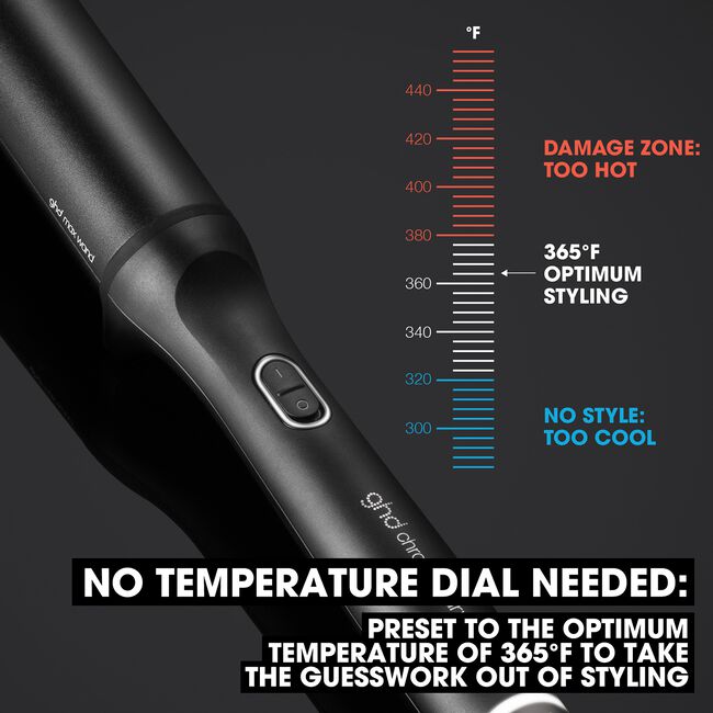 Professional Chronos Max 1.5" Wand for up to 3x faster, HD frizz-free soft waves and looser formed waves that last all day. With curl responsive technology for ultimate heat consistency of 365°F and no extreme heat damage.