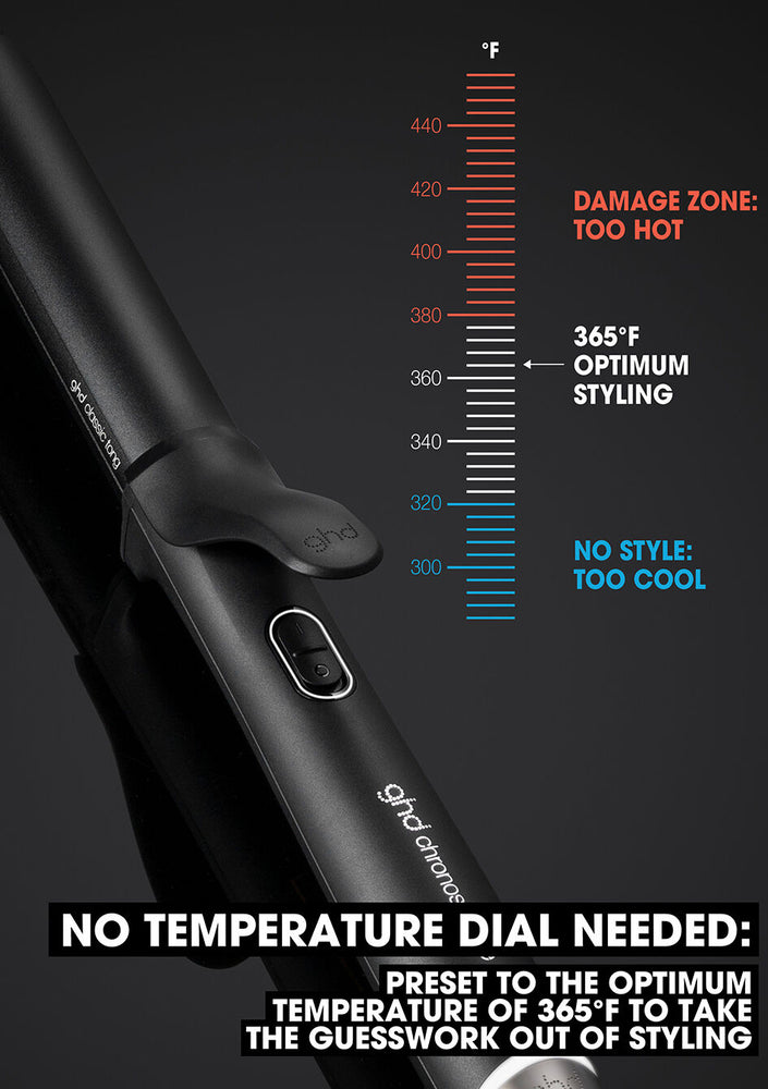 New ghd Chronos Curve new range of curlers with Curl-Responsive Technology with for 3x faster, high-definition results for easy, frizz-free curls that last all day. ghd chronos curve classic tong has a 1" medium barrel with spring activated ergonomic lever for Frizz-Free Curls, 50% more shine, and no extreme heat damage. Designed and tested by professionals our newest innovation yet, Classic Tong is the perfect tool for long-lasting voluminous curls. Perfect for creating soft tumbling curls with volume at the root or a faux blow style, ideal for medium to longer hair lengths.