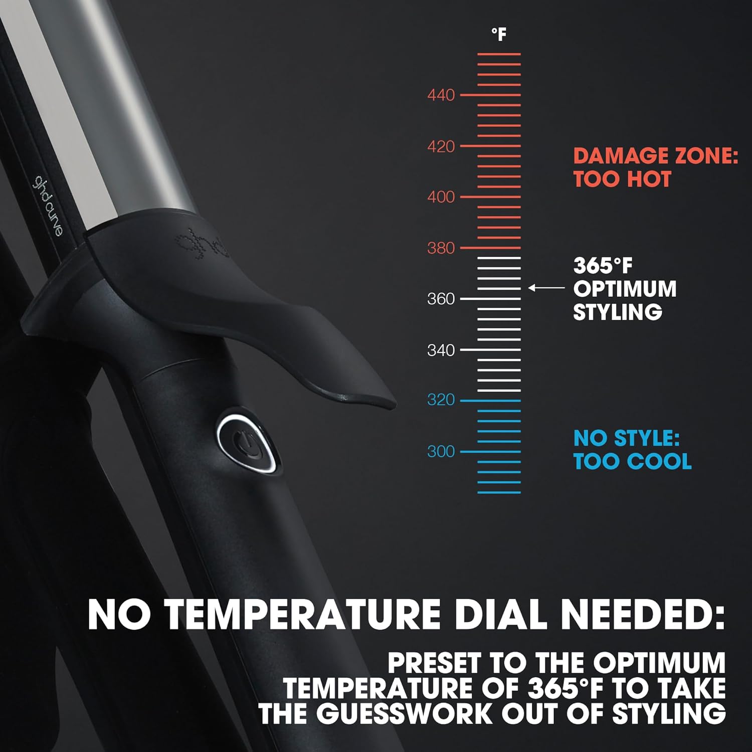 Pre-set to the optimum styling temperature of 365°F for no extreme-heat styling