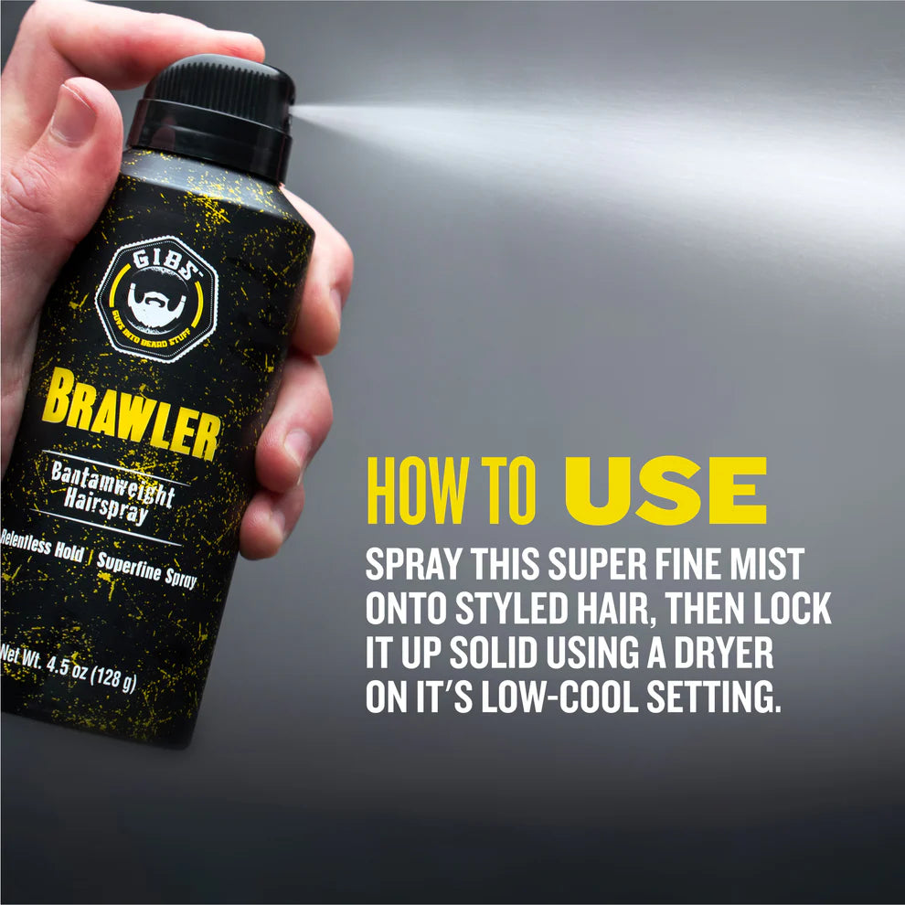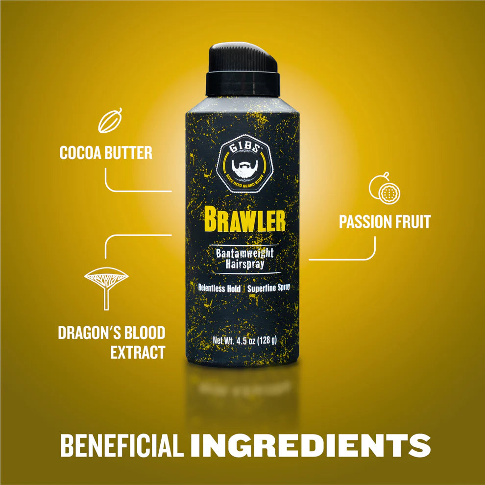 Relentless hold in a superfine spray makes Gibs Brawler Bantamweight Hairspray the most hardcore men's finishing spray in the ring. Fortified with Cocoa, Passion fruit and Dragon's Blood extracts, it not only provides hold that's got your back all day and night, but leaves your hair in even better shape than before. Strong hair and a stronger hold?talk about a one-two punch!