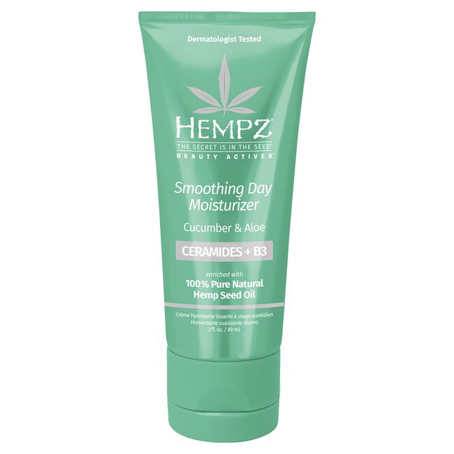 Enriched with Ceramides + B3. Ceramides help support the skin’s moisture barrier by making the skin appear firmer and smoother. B3 helps improve skin’s hydration and elasticity. Point of difference: Hempz has paired ceramides + B3 with their signature ingredient, hemp seed oil. Nature’s most perfectly balanced oil, it moisturizes, protects, heals, and calms skin while delivering anti-aging benefits.
