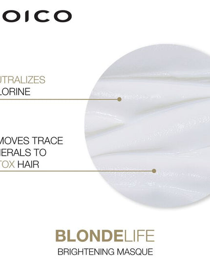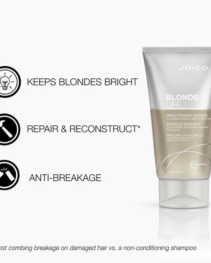Blonde Life Brightening Masque magically softens hair, hydrates highlighted strands, and amps up the gleam, by counteracting unwanted trace minerals that result in dullness and yellow tones in a single, 5-minute treatment.