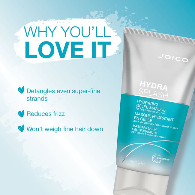 - HydraSplash gives fine-to-medium hair the hydration it needs and nourishes strands with a gentle touch.