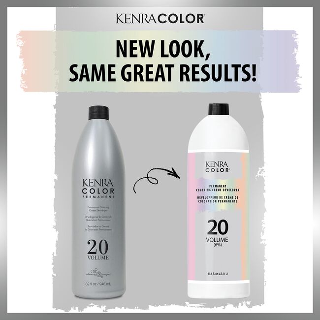 Kenra Color by Kenra Professional Permament Creme Developer features Balancing Complex 5. Permanent Creme Developer is available in 10V (3%), 20V (6%), 30V (9%), and 40V (12%) strengths. It's stabilized at each dedicated volume to ensure proper lift of natural hair oxidation of dye intermediates. Specially formulated for use with Kenra Color Permanent Coloring Creme to provide consistent, reliable results on every client, every time. The creamy consistency allows for easy mixing and precise application.