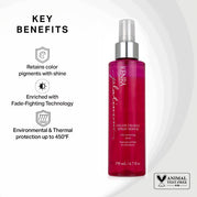 Kenra Platinum Color Charge Spray Serum provides ultimate protection against environmental stressors and heat up to 450F - for maximum color retention during and after styling. Enriched with high-performance Fade-Fighting Technology, this moisturizing spray helps to retain color pigments inside the cuticle for long lasting brilliance. Ideal for all hair types and colors.