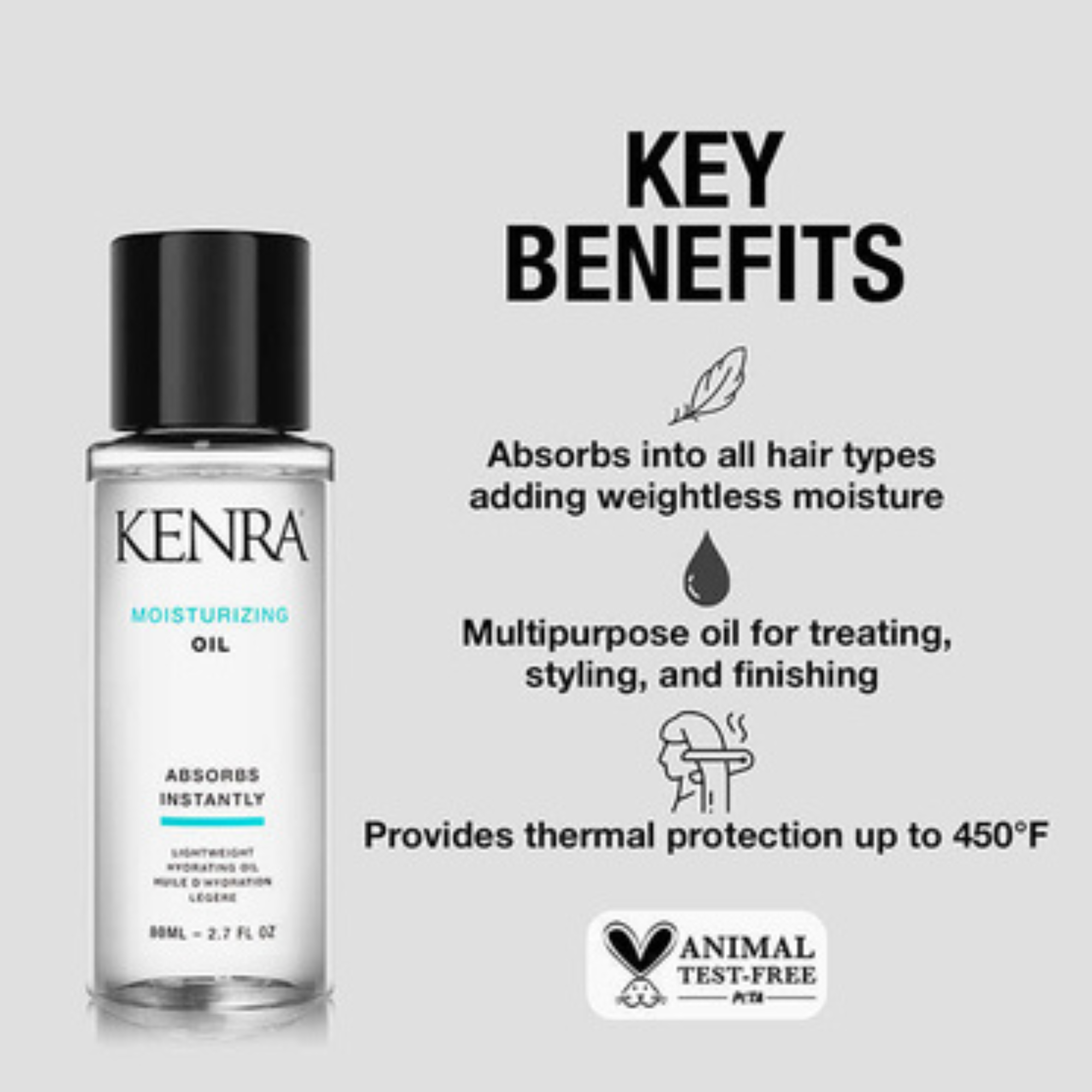 Styling: Apply to towel dried hair, mid-lengths to ends and blow dry with your favorite Kenra Professional Styler.