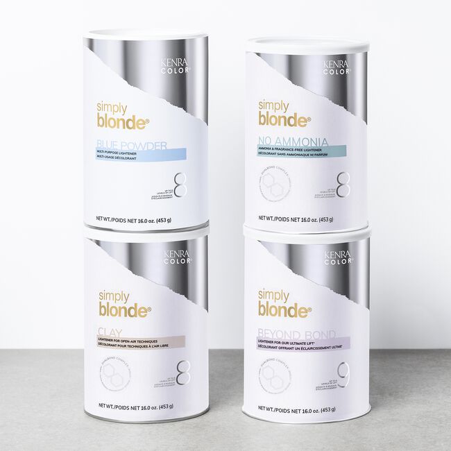 - Mix Kenra Color Simply Blonde No Ammonia Lightener with Kenra Color Creme Developer 10V-20V for on and off-scalp applications, or 10V-30V for off-scalp applications.