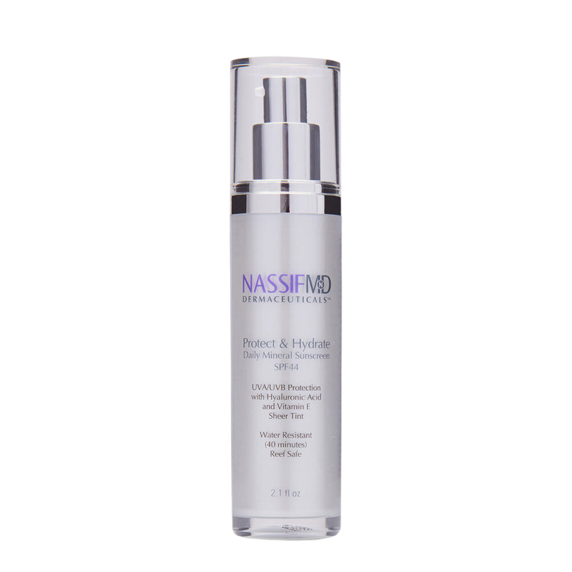 Part sunscreen and moisturizer, the Protect & Hydrate Daily Mineral SPF Sunscreen protects skin from harmful UV rays and pollution to deliver continuous hydration with hyaluronic acid. Featuring mineral sun protection and ascorbyl palmitate, a form of vitamin C to brighten and protect the skin, this lightweight, waterproof cream features a whipped butter texture and acts like a BB cream with a universal tint ideal for all skin tones.