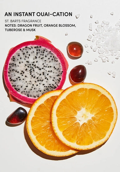 Fly a-OUAI to St. Barts with this scent that has notes of dragon fruit, orange blossom, tuberose, and Baltic amber. Body Cleanser St. Barts will transport you & gently cleanse your bod while leaving your skin feeling reborn—you know, like you just got back from vacation.
