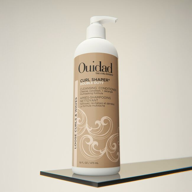 Ouidad's Curl Shaper Double Duty Cleansing Conditioner can be used as a daily conditioner or as a co-wash to cleanse and hydrate hair. This multitasking formula detangles while infusing moisture to encourage definition and add volume without weighing down your curls. When used as a co-wash, the creamy formula gently removes build-up, impurities, and excess oil without stripping your hair. However you choose to use it, rice bran oil and resurrection flower help boost moisture levels to build curl memory.
