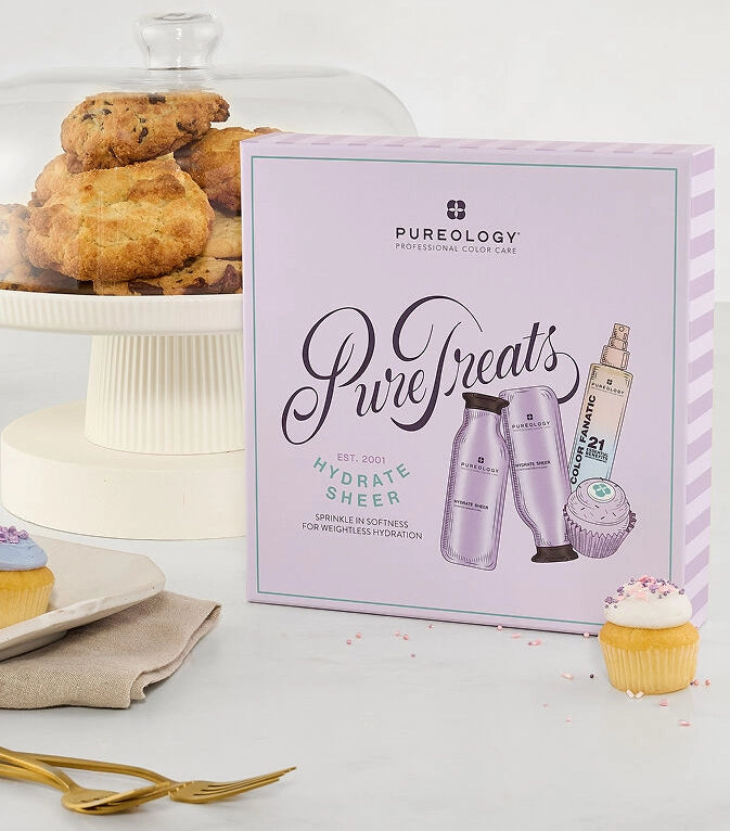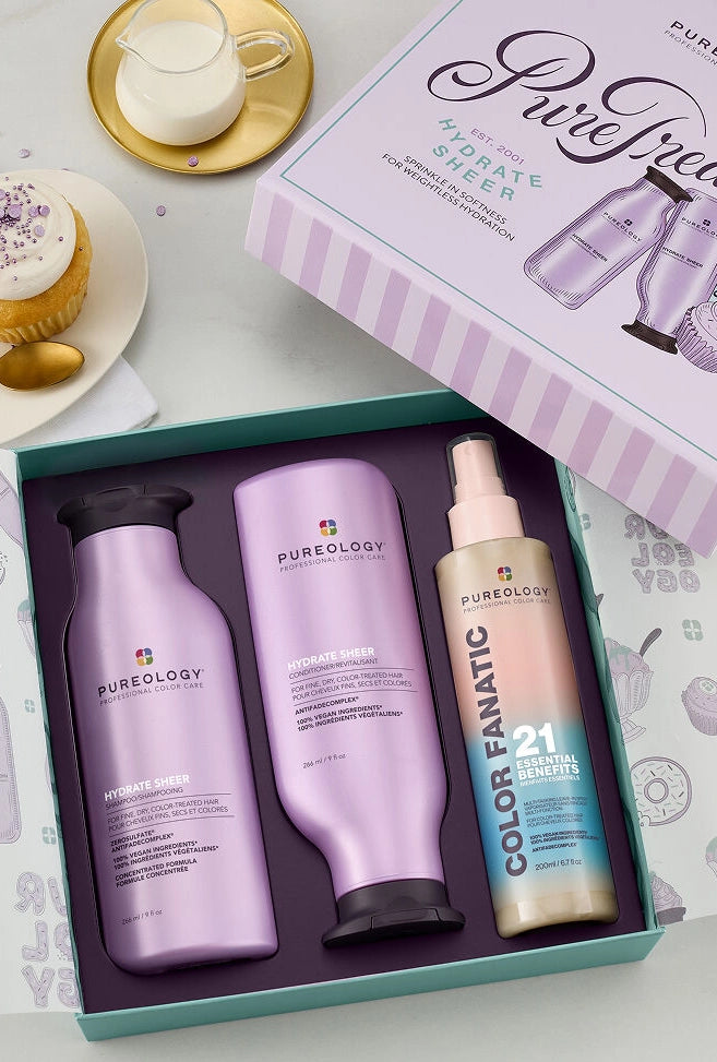 The Pureology Hydrate Sheer Holiday Kit delivers lightweight, touchable moisture to fine, dry, and color-treated hair, without buildup.
