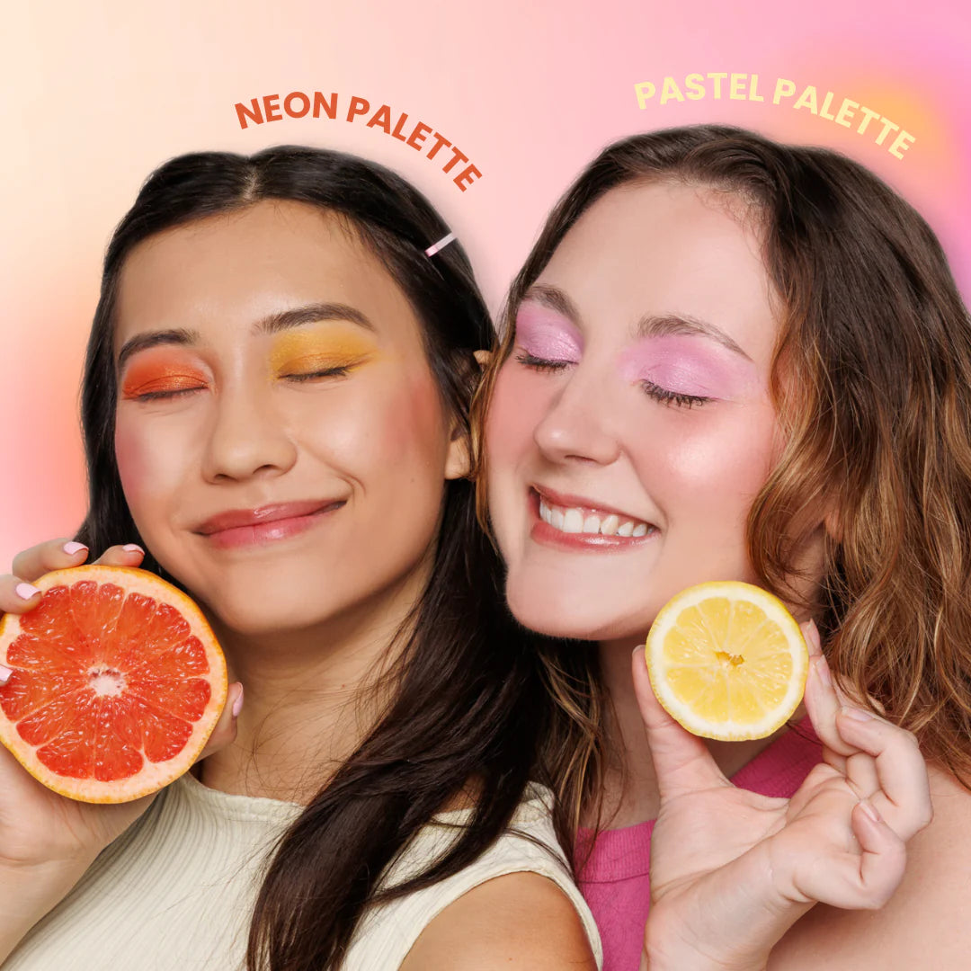 Formulated with fruit-powered pigment, each shade glides on smoothly and blends like a dream—no patchiness, no fading. Whether you're into soft pastel glam or bold, glitter-packed vibes, this palette gives you the freedom to express your mood, your way.