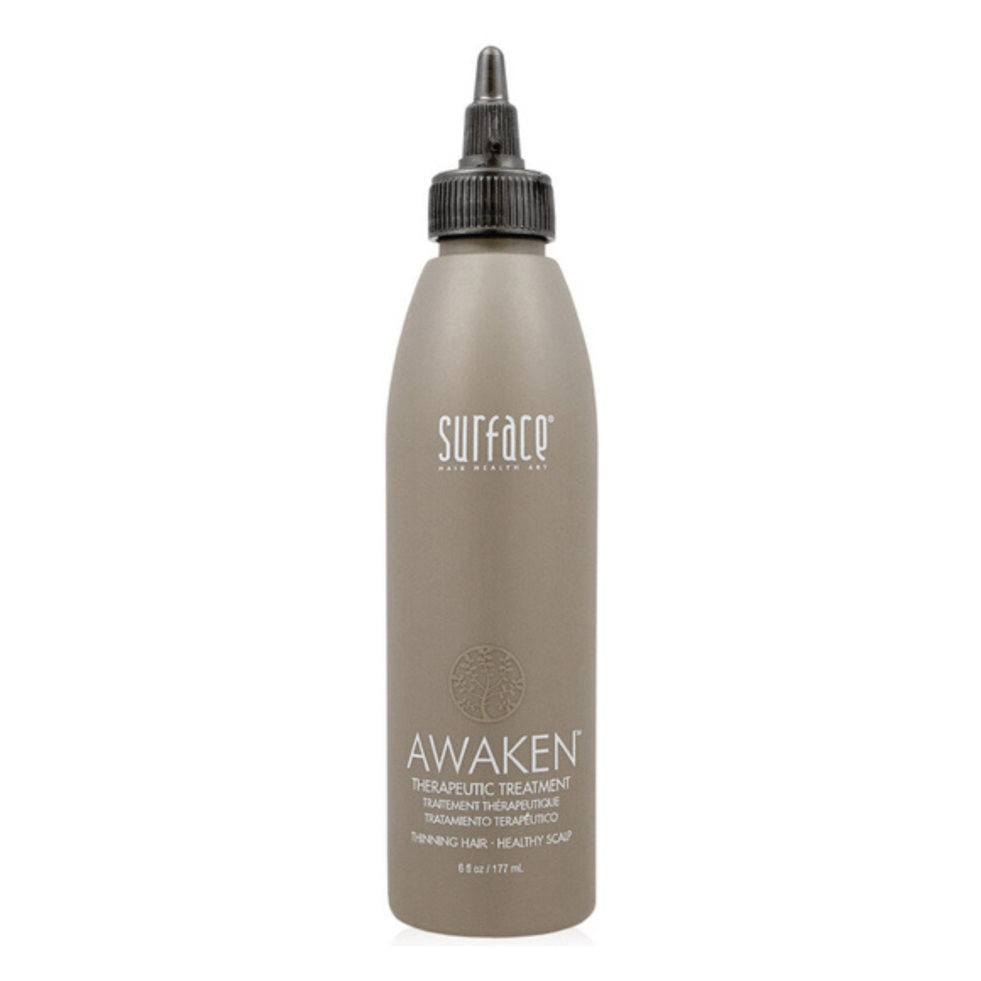 Surface's Awaken Therapeutic Treatment uses natural extracts including saw palmetto with mineral ferments and antioxidants to help detoxify and rejuvinate the scalp and follicle. Nutrients are maximized with vegan protein and essential amino acids.