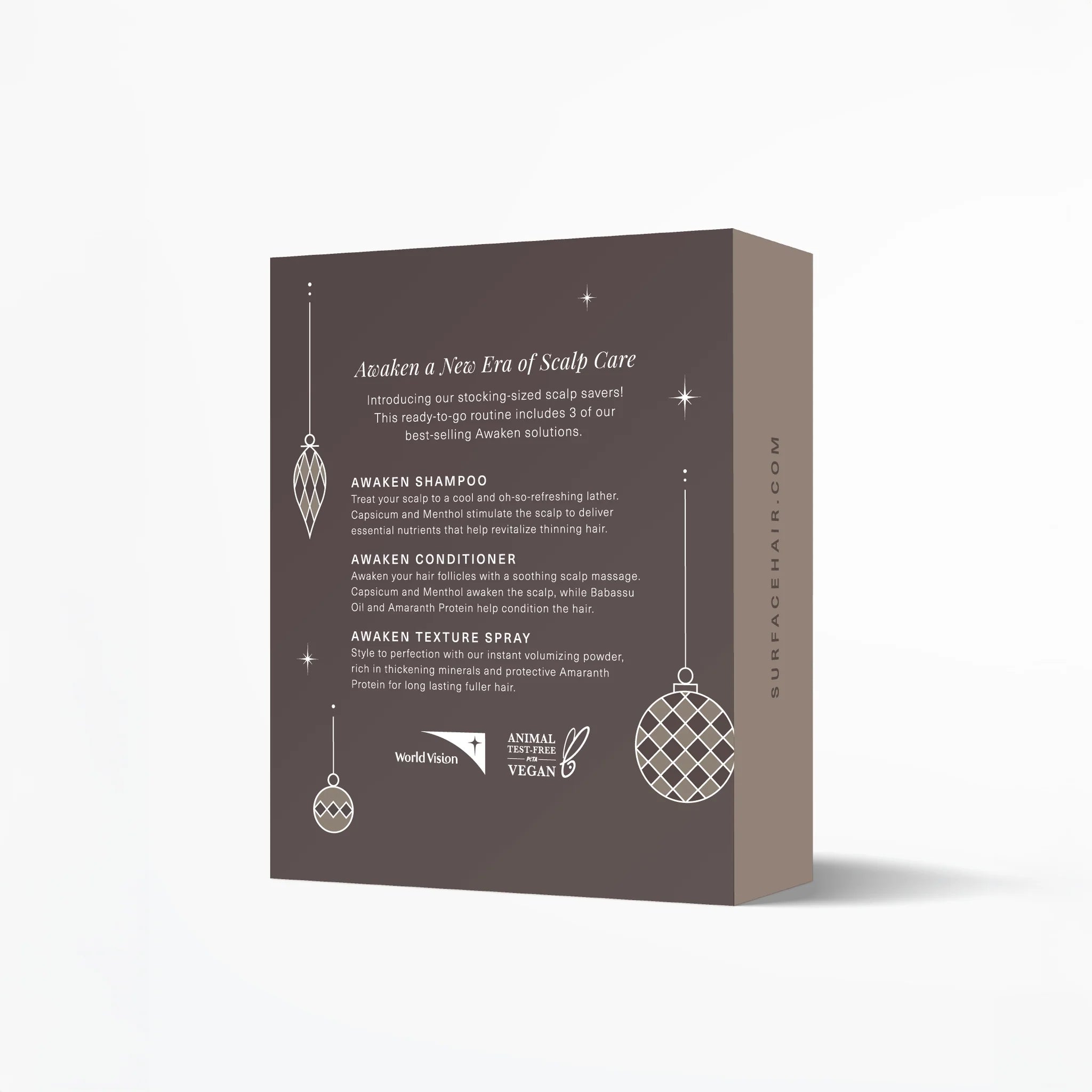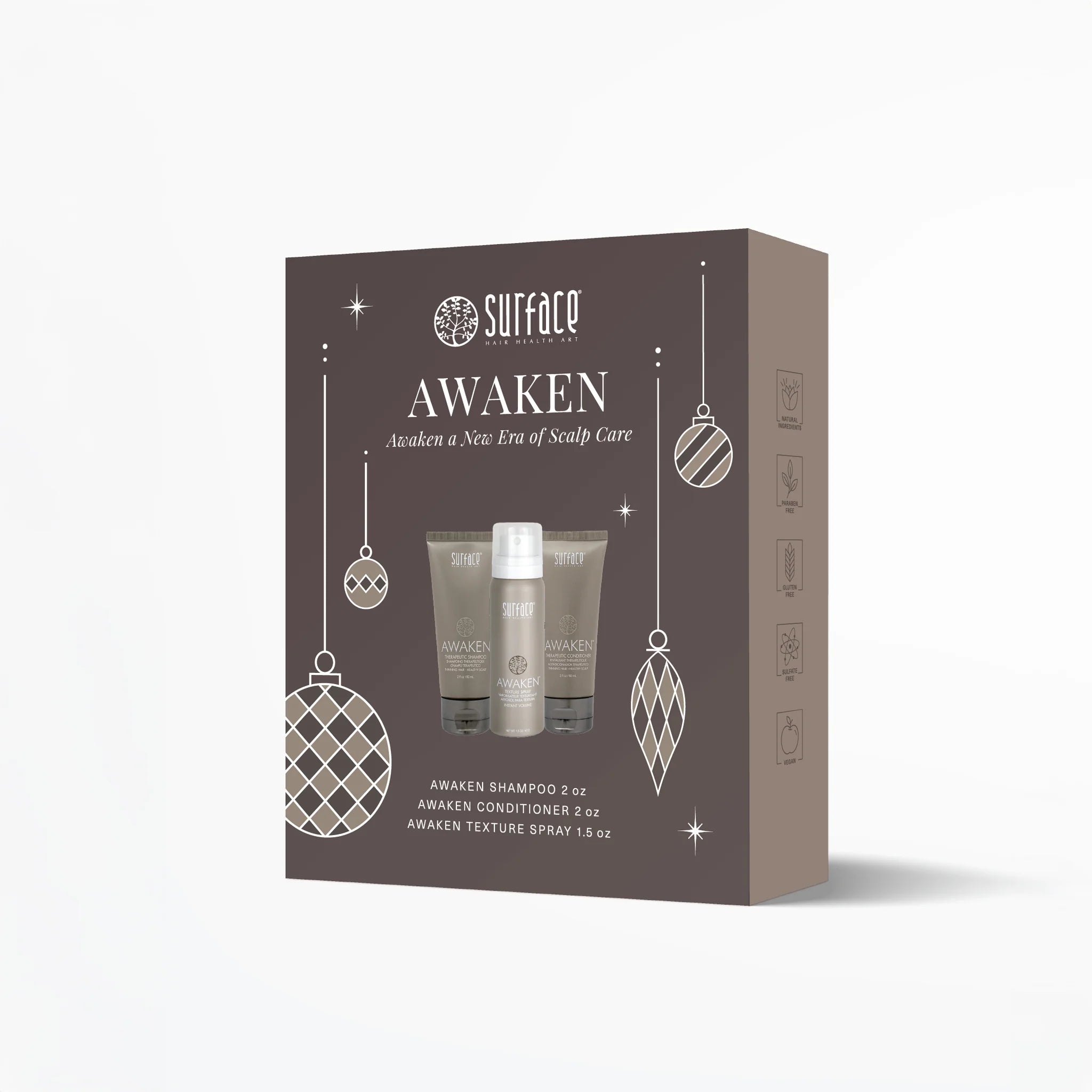 Awaken Shampoo 2oz, Awaken Conditioner 2oz, Aweaken Texture Spray 1.5oz