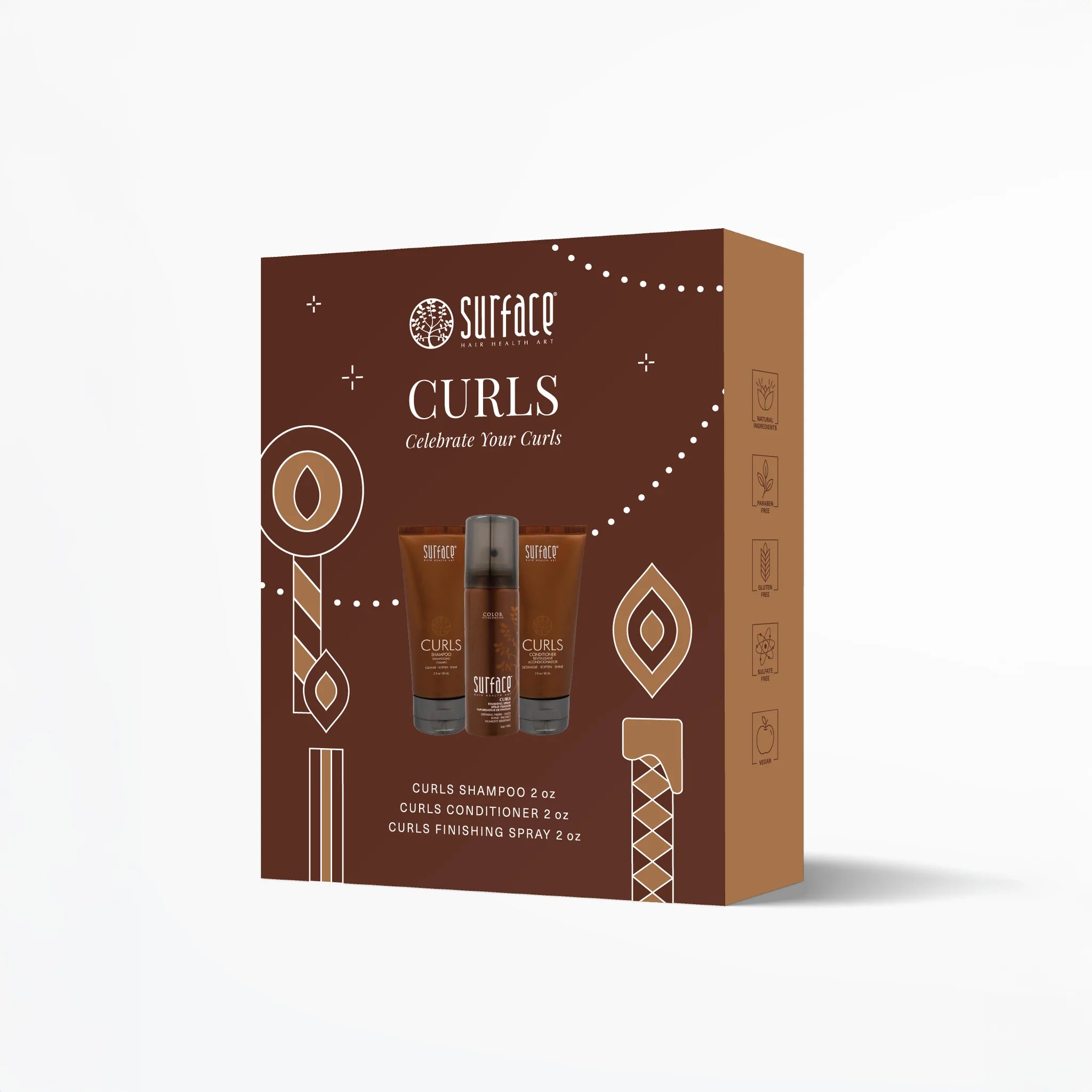 Curls Shampoo 2oz, Curls Conditioner 2oz, Curls Finishing Spray 2oz