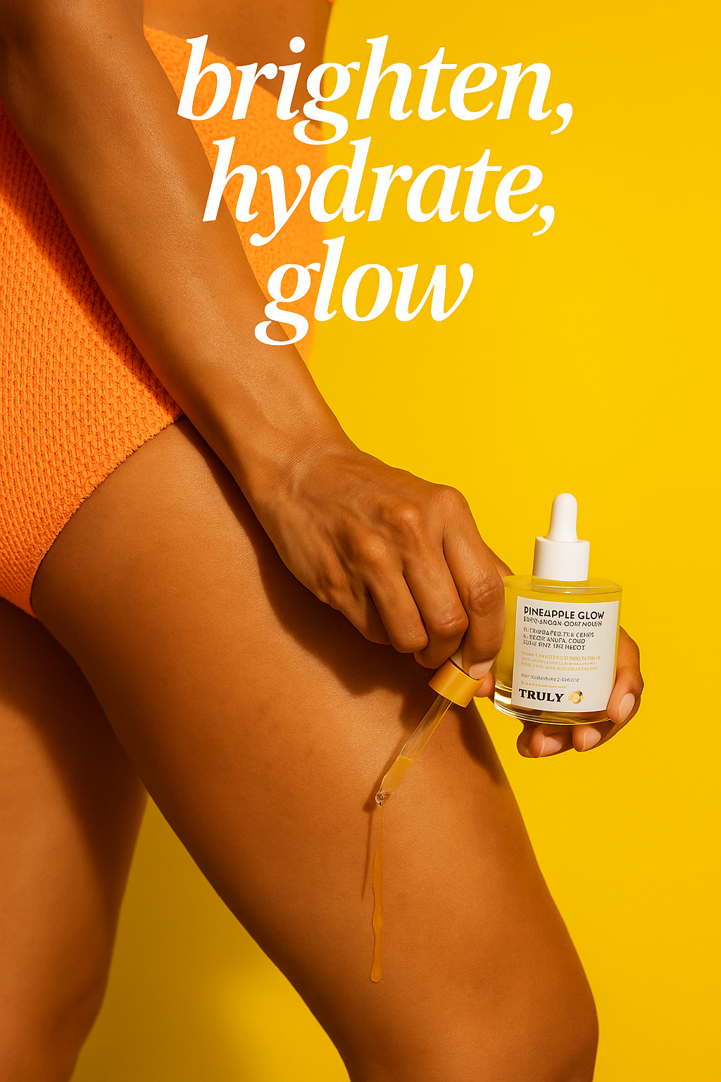Revitalize your skin with the tropical radiance of Pineapple Glow Brightening Body Serum. This high-performance body serum is infused with a powerful blend of Hyaluronic Acid, Vitamin E, Pineapple Extract, and Squalene to deeply hydrate, brighten, and even out skin tone. The antioxidant-rich formula works to protect against environmental stressors while delivering a luminous, dewy finish.