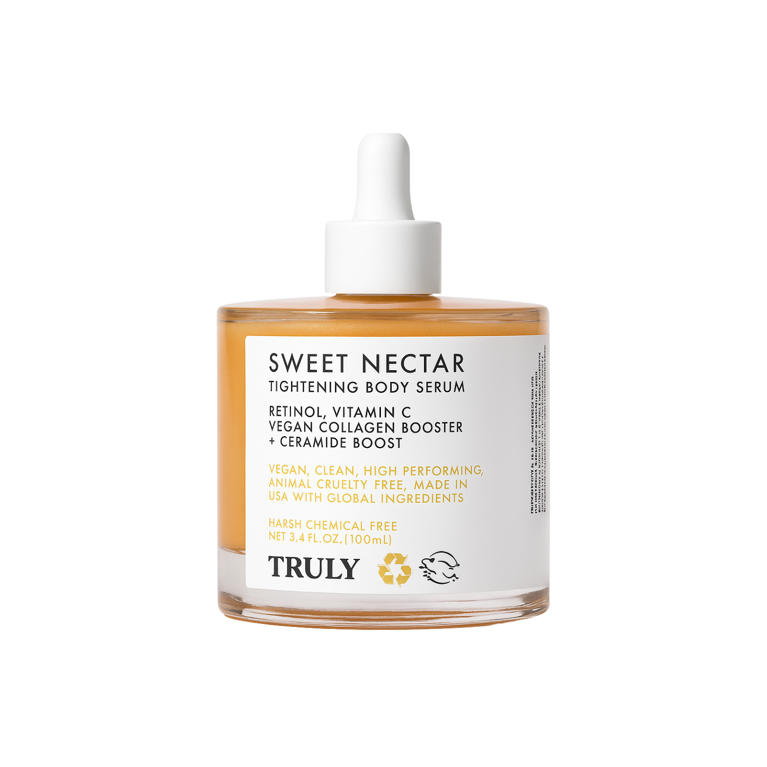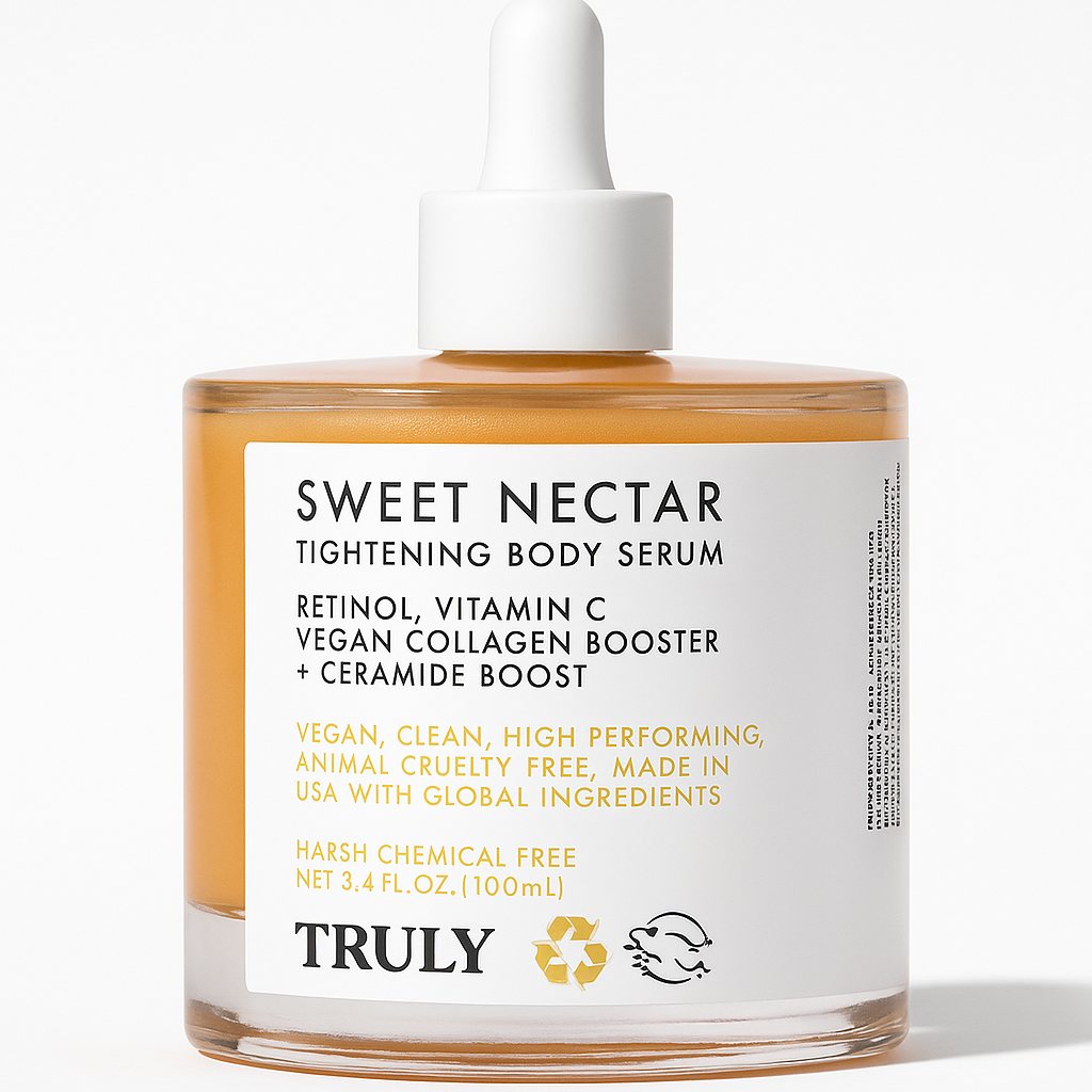 Reveal smoother, firmer skin with Truly’s Sweet Nectar Tightening Body Serum. Infused with powerful ingredients like Retinol, Vitamin C, Vegan Collagen Booster, and Ceramide Boost, this lightweight serum is designed to help visibly tighten, tone, and hydrate your skin.