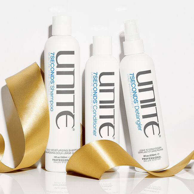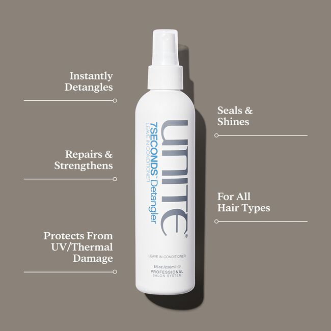 - Spray 7SECONDS Detangler on damp hair and glide comb through ends. Do not rinse.
